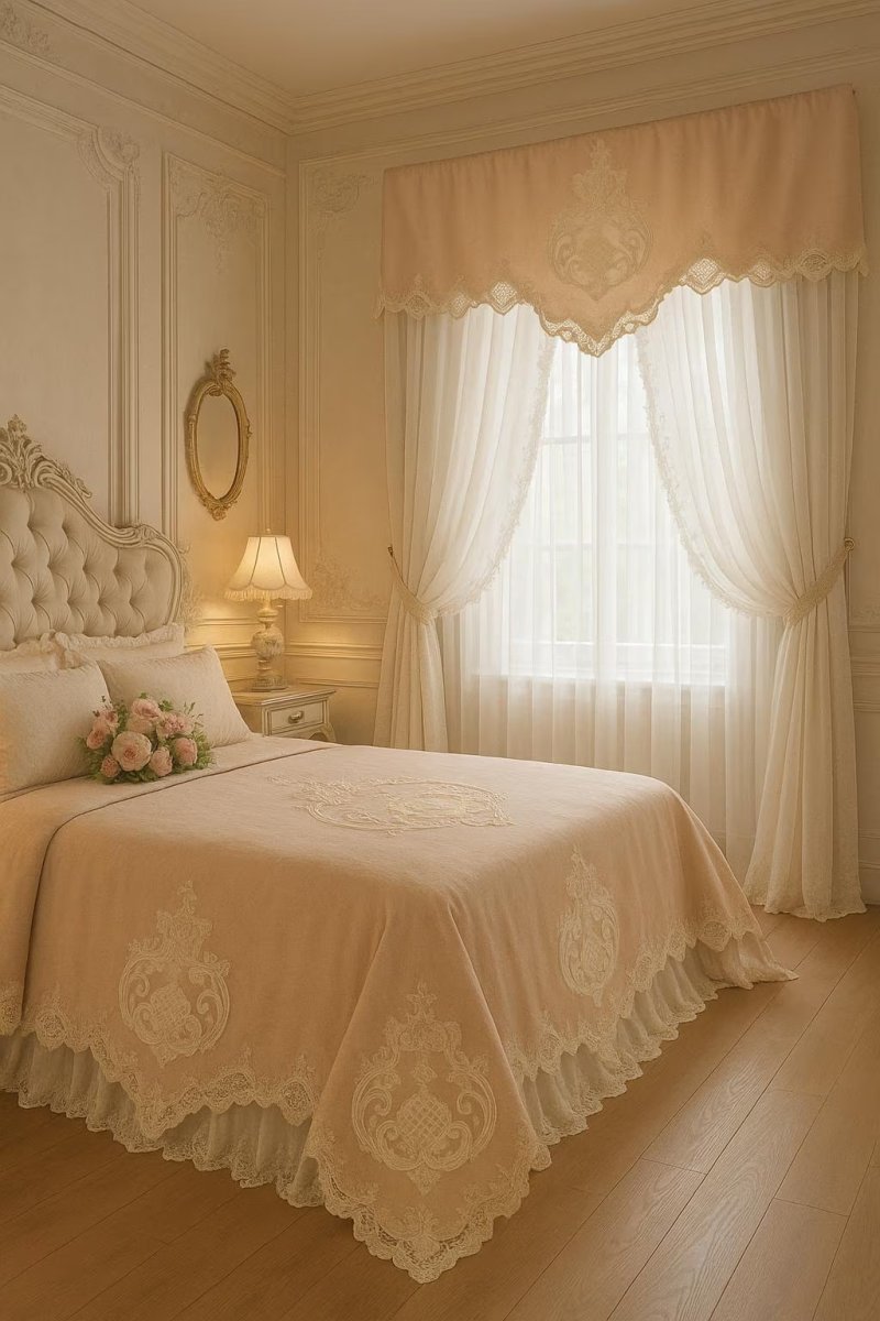 Copriletto Romantico in Cotone Biologico con Pizzo Italiano Intagliato – Fatto a Mano