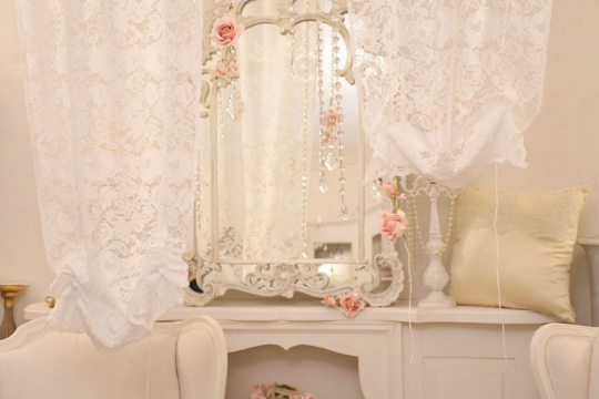 Raffinata tenda in pizzo, su inspirazione di quelle antiche.