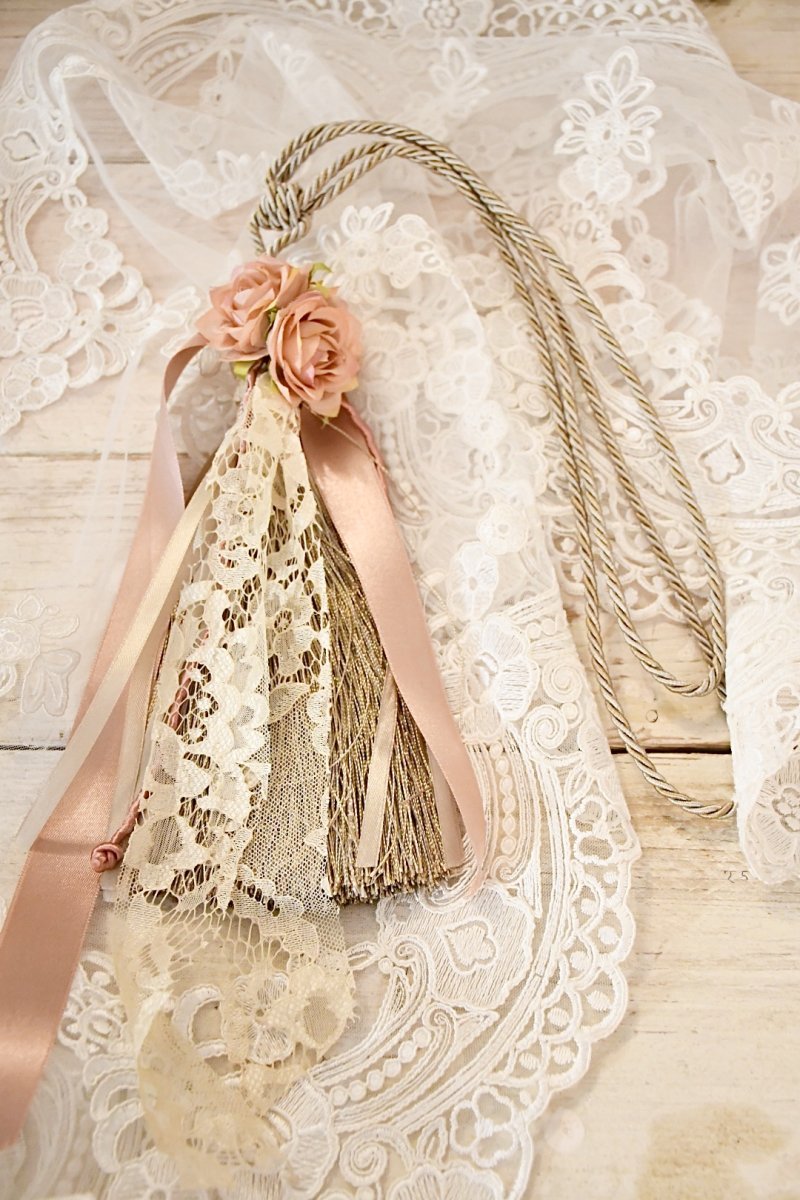 Raffinato ambrasse per tenda realizzato a mano nei nostri laboratori .
