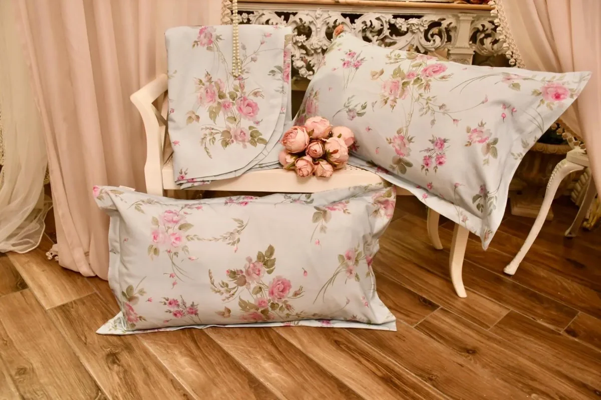 Completo letto straordinario, dal fascino romantico e senza tempo, perfetto per chi desidera trasformare la propria camera in un rifugio di eleganza e delicatezza. Questo meraviglioso copriletto shabby chic è realizzato con un tessuto italiano esclusivo, prodotto da Faggianis a partire da un dipinto fatto a mano da una delle più abili decoratrici italiane.