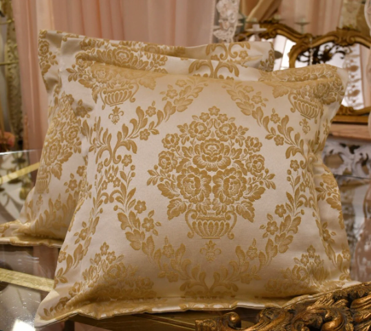 Cuscino in tessuto pregiato damascato oro. Per il tuo salotto, il tuo letto. il tuo divano.Fatto rigorosamente a mano nei nostri laboratori