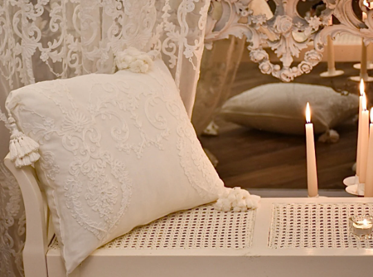 Cuscino Romantico in cotone biologico con pizzo intagliato