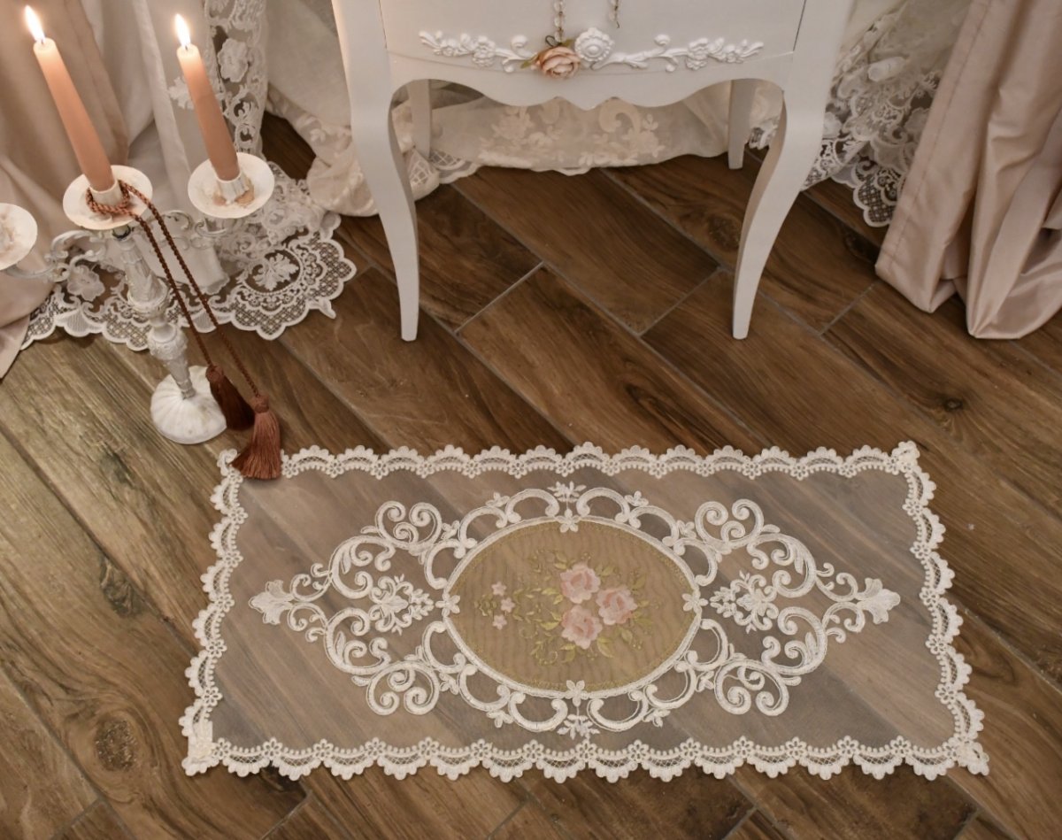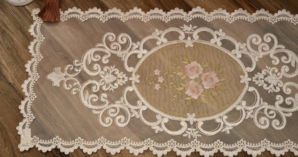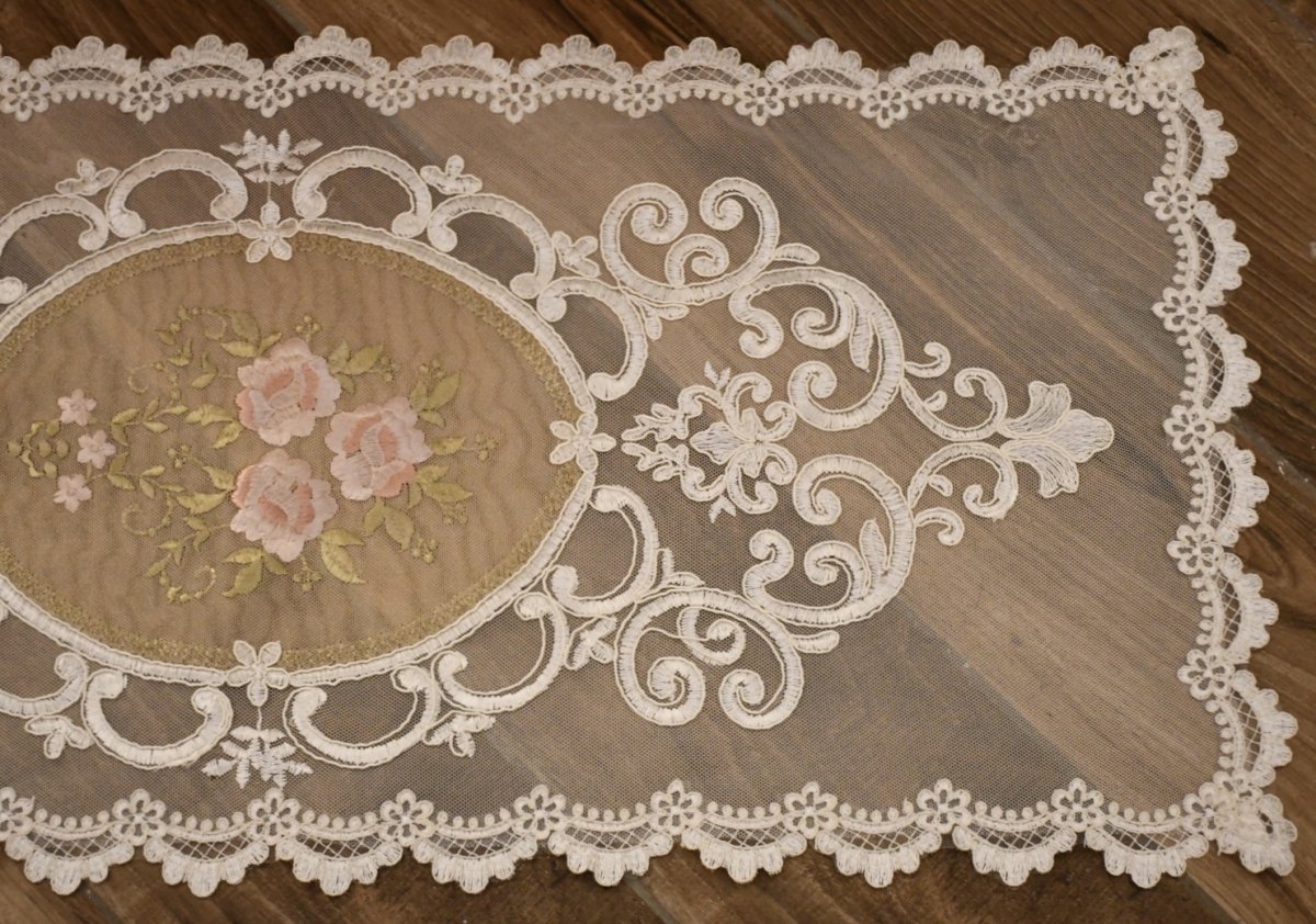 Delizioso centrino in tulle con decoro centrale di Rose .