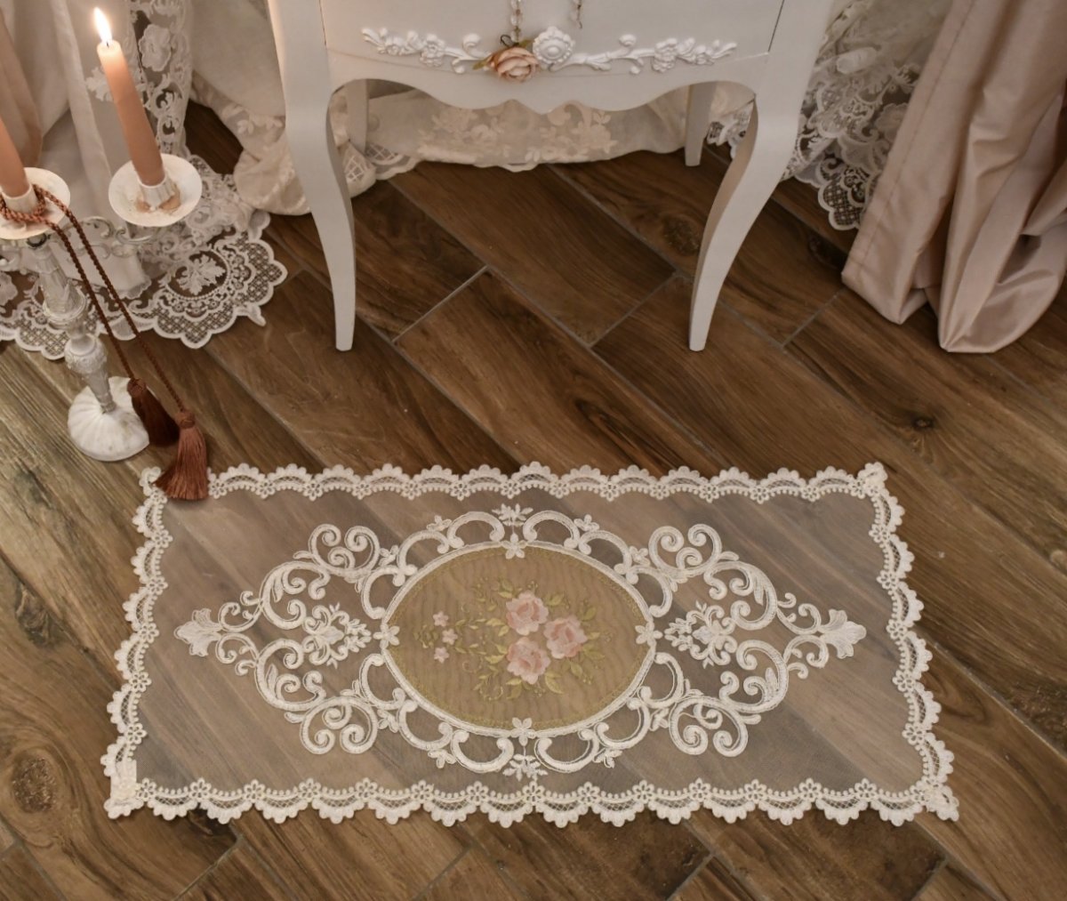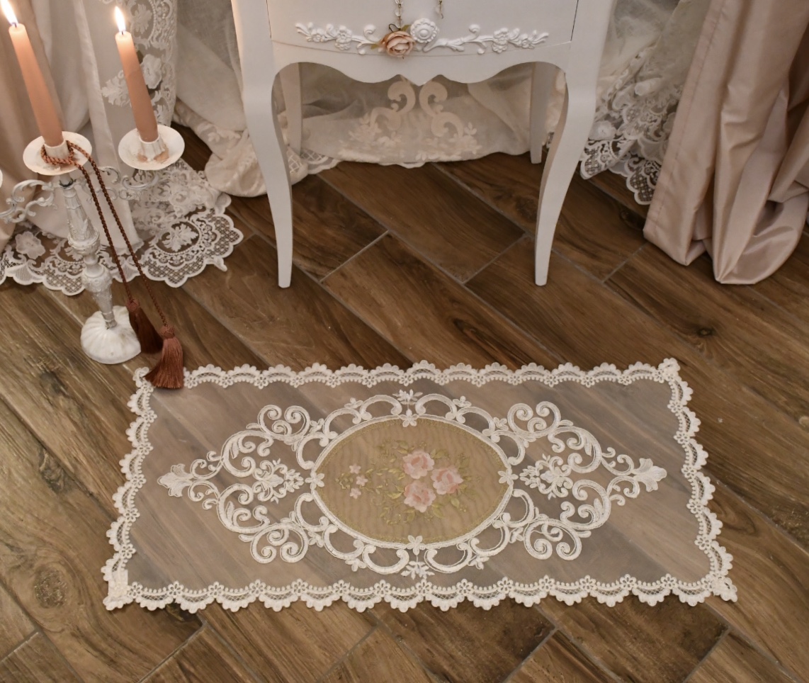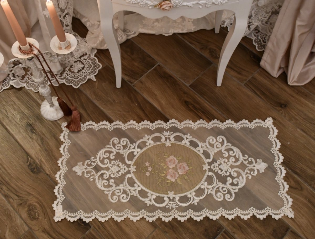 Delizioso centrino in tulle con decoro centrale di Rose .