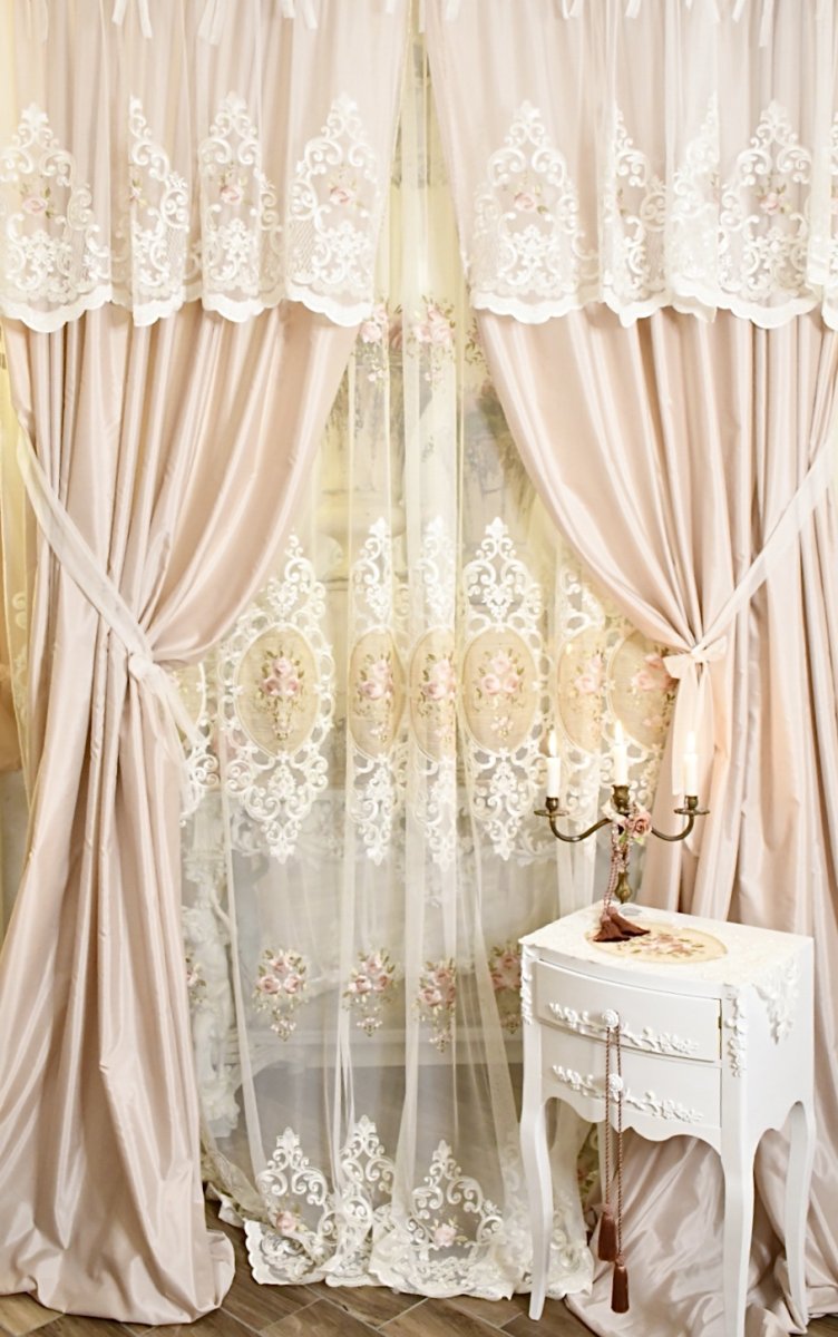 La prima misura si riferisce alla larghezza della mantovana, la seconda misura all’altezza delle tende.