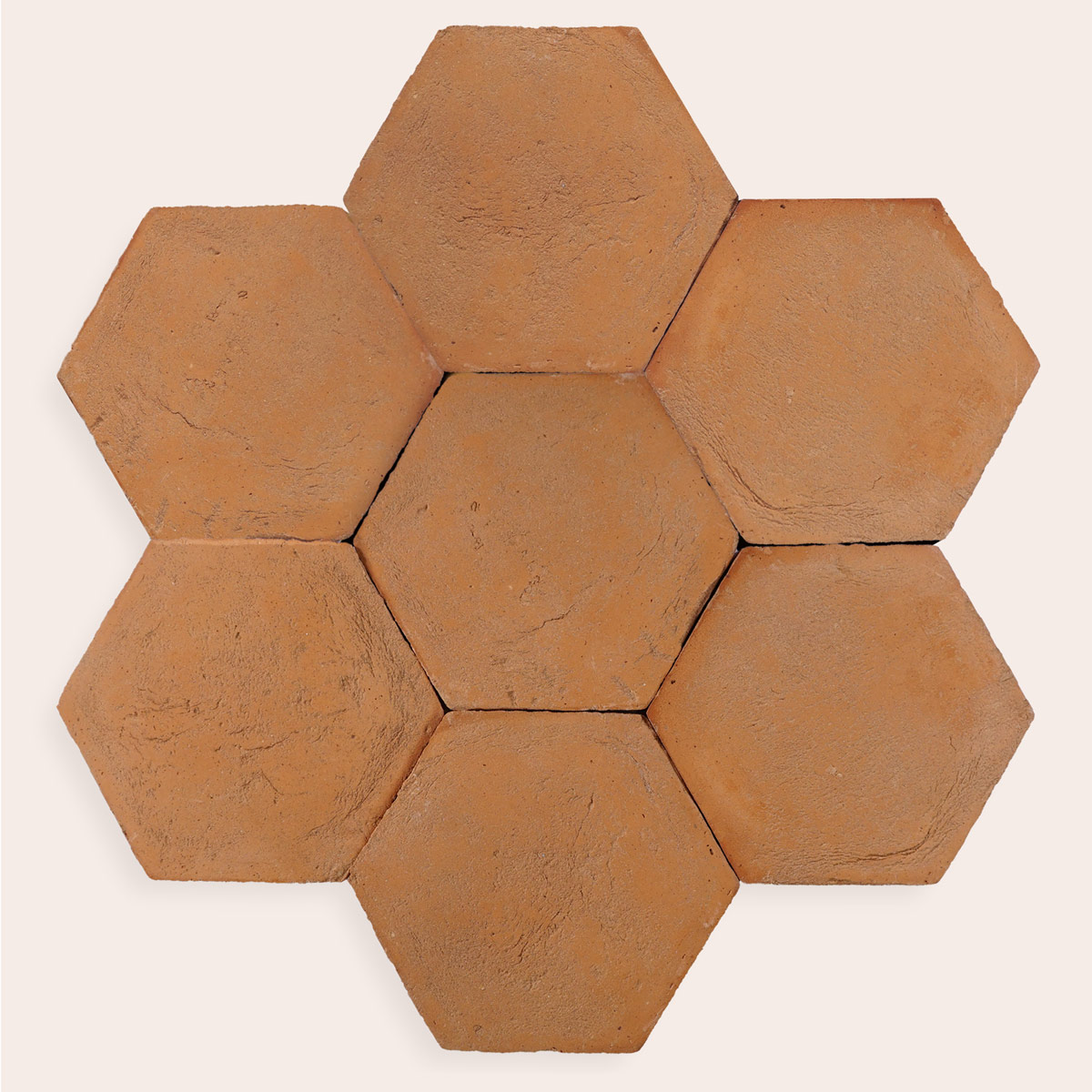 Nothing is born from diamonds. Flowers are born from manure. From the cold anonymity of the hexagonal cement tiles of public buildings, an ambiance of soft warmth is born. It is the essence of terracotta united with the shape of the hexagon. It combines perfectly with the triangle, with either a combination of tone on tone or an arrangement of contrasting colors.