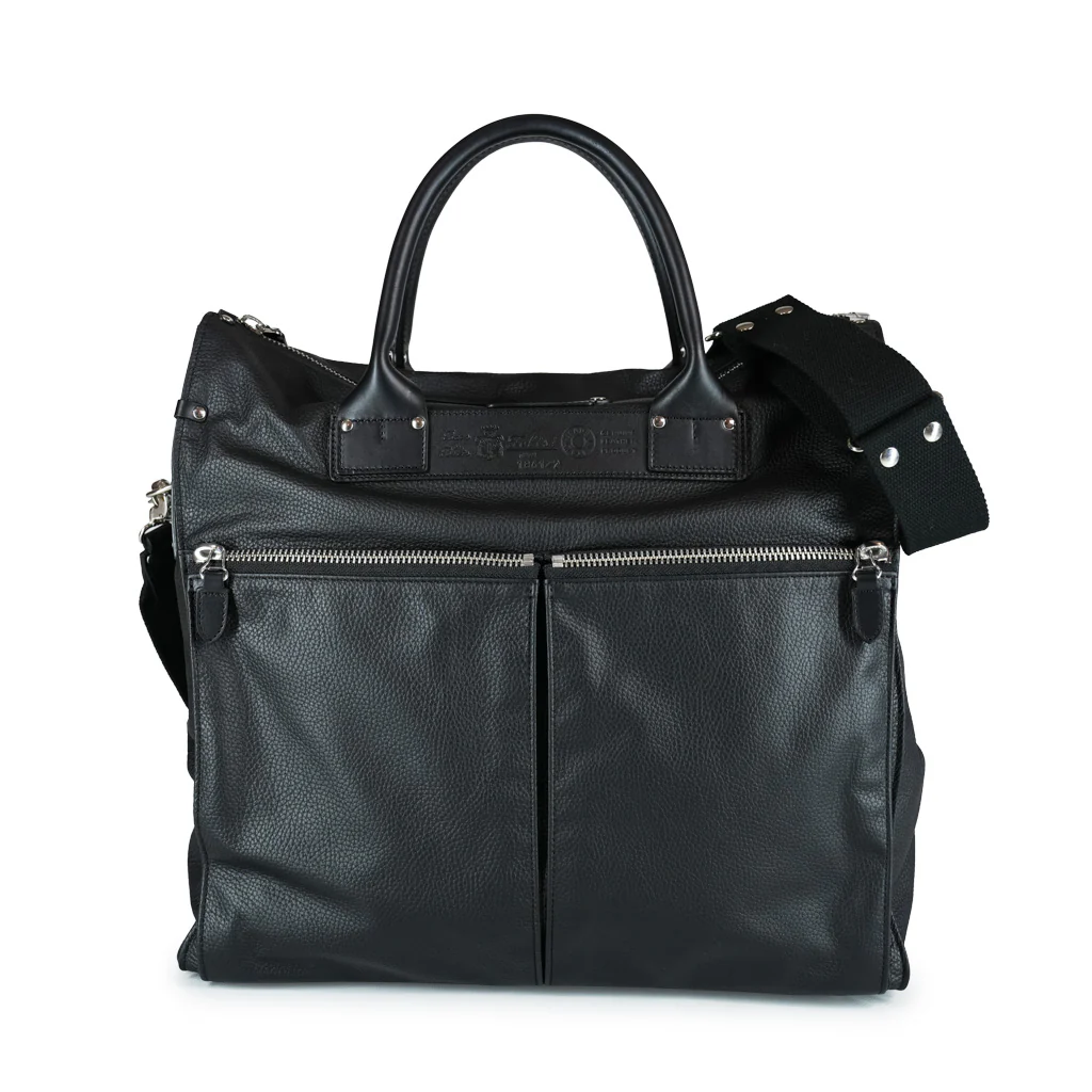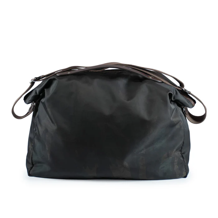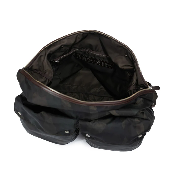 Borsa a mano e tracolla Gerald di Felisi realizzata in nylon tecnico camouflage con finiture in pelle di spalle di toro colore moro.