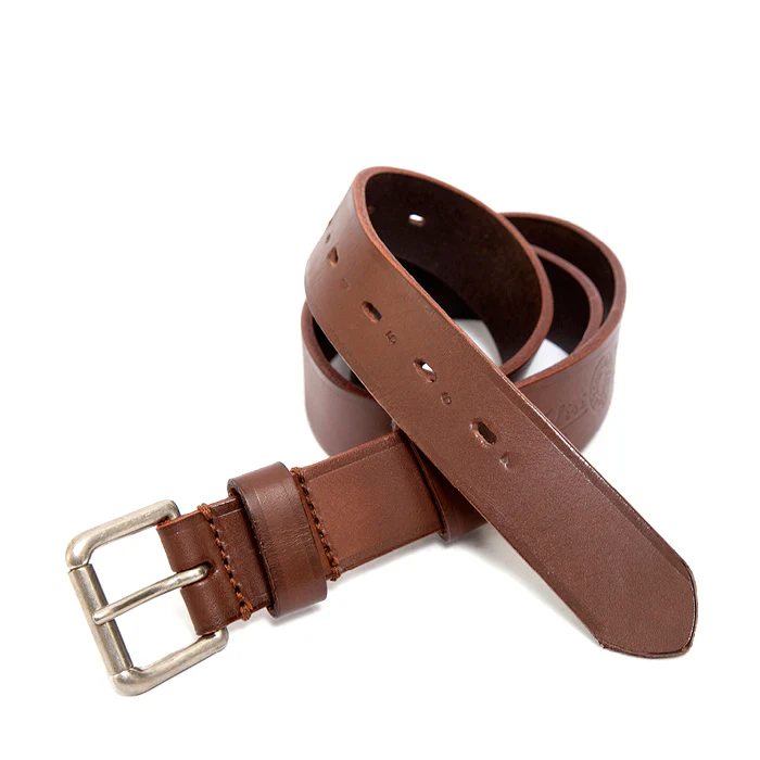 Cintura Gil di Felisi in pelle di vacchetta volanata colore moro.
