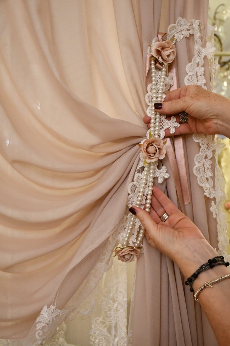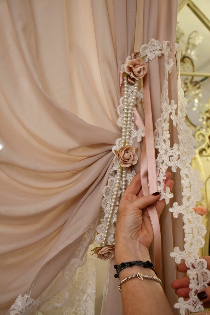 Romantico, raffinato, elegante ambrasse per tende fatto a mano nei nostri laboratori di sartoria.