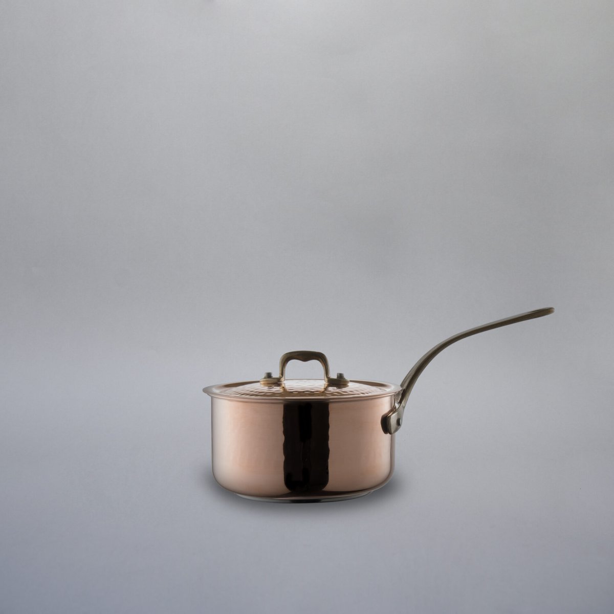 Casseruola in rame induzione ø16 cm con manico e coperchio in ottone fuso – DiamondTin™