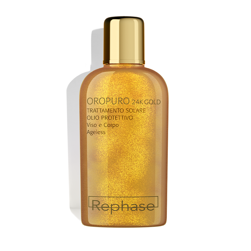 L’Olio Solare Protettivo Oropuro di Rephase è un’innovativa formulazione ideale per un’abbronzatura dorata, intensa, protetta in pochissimo tempo. Un pregiato complesso antiage unitamente a rari e straordinari oli esotici, stimola l’abbronzatura restituendo alla pelle idratazione, luminosità , morbidezza e setosità . L’oro colloidale, inserito in un complesso di fosfolipidi di soia e di liposomi, viene costantemente rilasciato proteggendo il collagene e preservando la giovinezza della pelle. Grazie a OROPURO OLIO PROTETTIVO la pelle è più bella, l’abbronzatura è luminosa e dura a lungo. I piccoli segni di disidratazione sono levigati. La sera OROPURO OLIO PROTETTIVO, grazie alla presenza delle particelle di oro, si trasforma nel miglior alleato per un corpo splendente e vellutato.