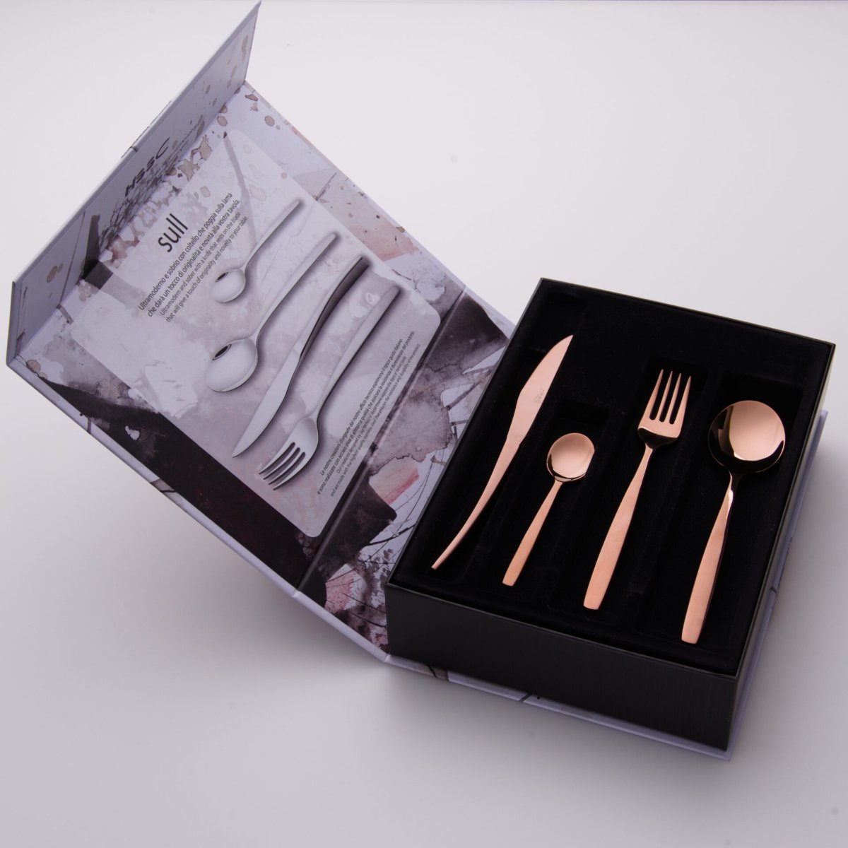 Sull nasce dall’esigenza di portare in tavola eleganza senza sforzo, attraverso linee pulite, impugnature ergonomiche e finiture raffinate che rispecchiano i trend più attuali. È pensato per chi cerca posate moderne che resistano nel tempo, non temano l’uso quotidiano e garantiscano performance elevate anche in ambienti professionali, come ristoranti e hotel.