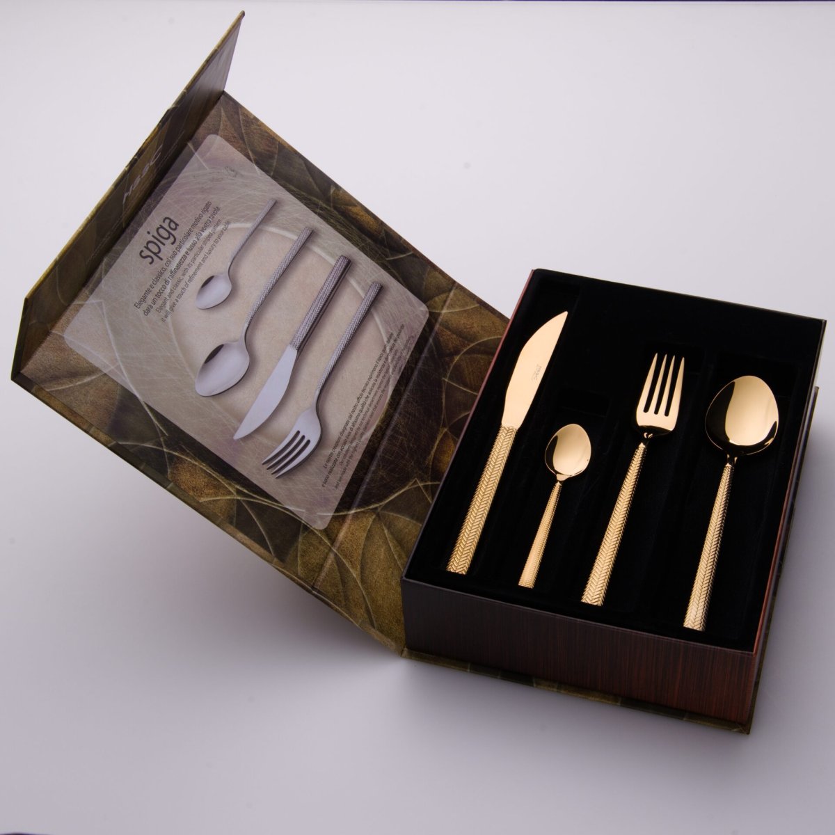Il set posate in acciaio inox Spiga della prestigiosa collezione Dituttidì è la scelta perfetta per arricchire la tua tavola con un tocco di classe. Caratterizzato da un raffinato motivo rigato, questo servizio posate moderne rappresenta l’incontro ideale tra bellezza estetica e qualità funzionale. Realizzate in pregiato acciaio inox 18/10 con lame in acciaio martensitico 420 temperato, le posate del set Spiga sono progettate per resistere al tempo, conservando brillantezza e nitidezza a lungo.