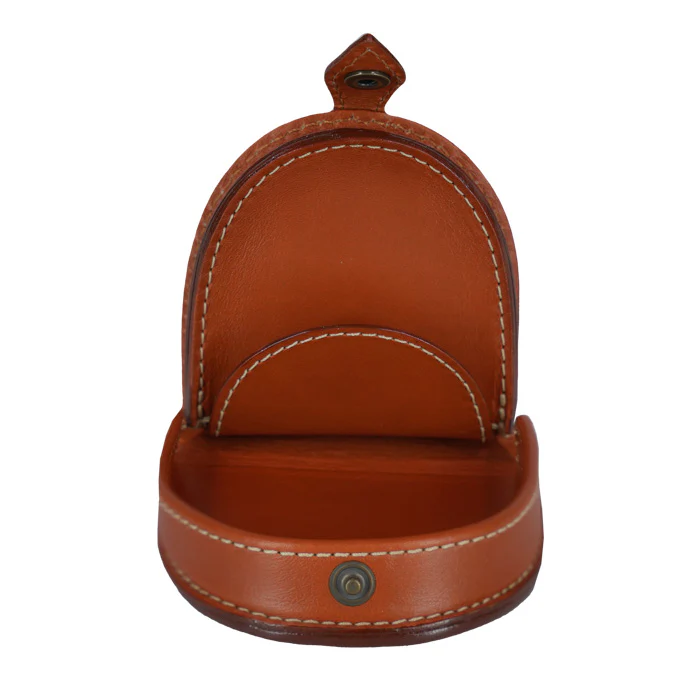 Porta monete Tacco di Felisi realizzato in pelle di vacchetta colore chiaro con cuciture a contrasto colore greggio.