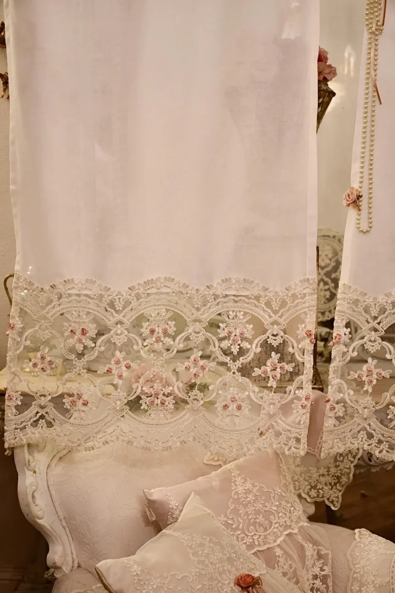 Queste tendine a vetro si inseriscono perfettamente in ambienti dallo stile classico, shabby chic, o romantico, donando un tocco di calore e delicatezza. La combinazione del lino bianco con il merletto ricamato le rende ideali per finestre di cucine, salotti, camere da letto e persino bagni, dove si desidera mantenere luminosità .