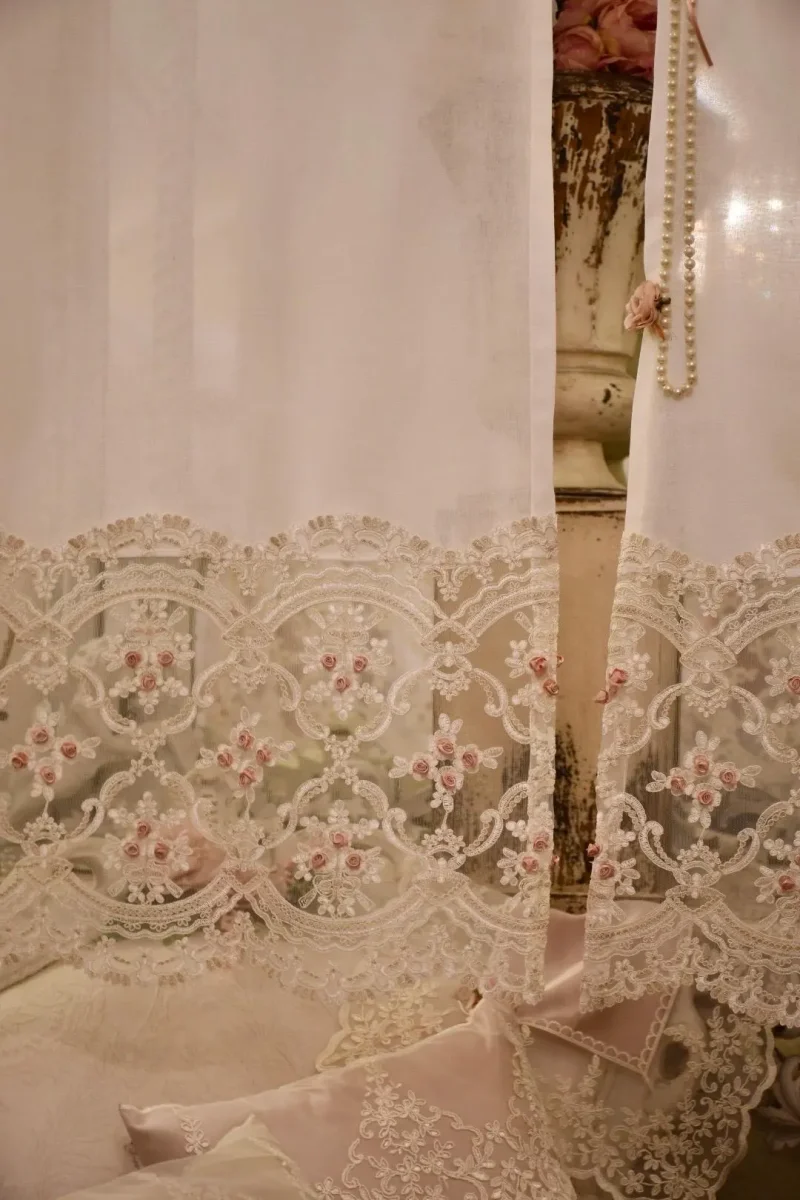 Il merletto è posizionato nella parte finale della tendina, donando un effetto elegante e raffinato. La parte finale della tendina è il preludio perfetto al pannello, collegando il design leggero della parte superiore a una base più decorativa.