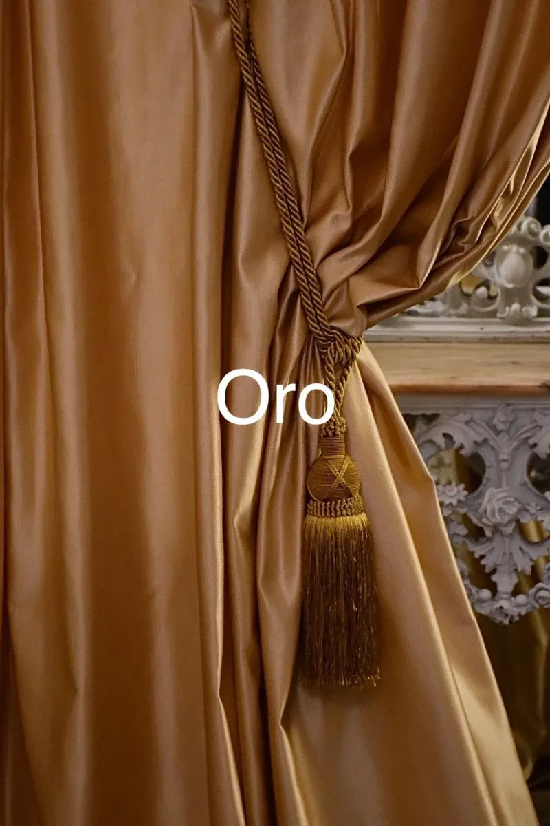 Benvenuto nel regno dell’eleganza suprema delle tende in raso di seta italiano. Esplora la nostra esclusiva collezione di tende prestigiose, avvolte in un lussuoso splendore disponibili in tre colori Le nostre tende in raso di seta rappresentano il perfetto equilibrio tra eleganza e vivacità cromatica, realizzate con maestria artigianale per arredamenti di lusso. I colori brillanti e saturi valorizzano il pregio della seta, conferendo un tocco unico agli spazi. Il rosa antico si distingue per la sua tonalità intensa e vibrante, un colore deciso che sprigiona fascino classico. L’azzurro, altrettanto carico e brillante, evoca un senso di freschezza sofisticata, mentre l’oro, con la sua luminosità avvolgente, aggiunge una nota di opulenza senza tempo. Ogni dettaglio è studiato per creare un effetto scenico ricercato e di grande impatto visivo, esaltando l’unicità dei tessuti italiani di alta qualità.Ogni tenda è un capolavoro artigianale, tessuta con il raso più fine, emanando un riflesso brillante che trasforma ogni ambiente in una scenografia di lusso. Eleva il tuo spazio con il fascino senza tempo delle nostre tende in raso brillante, una dichiarazione di stile e raffinatezza senza paragoni.Il prezzo é riferito a 1 telo disponibili in diverse misure ,ma per misure personalizzate non esitate a contattarci. Nella parte superiore hanno un nastro dove si puó inserire qualsiasi bastone o inserire gancetti per qualsiasi scorritenda . Raso di cotone e seta lavabile in lavatrice con programma delicato.