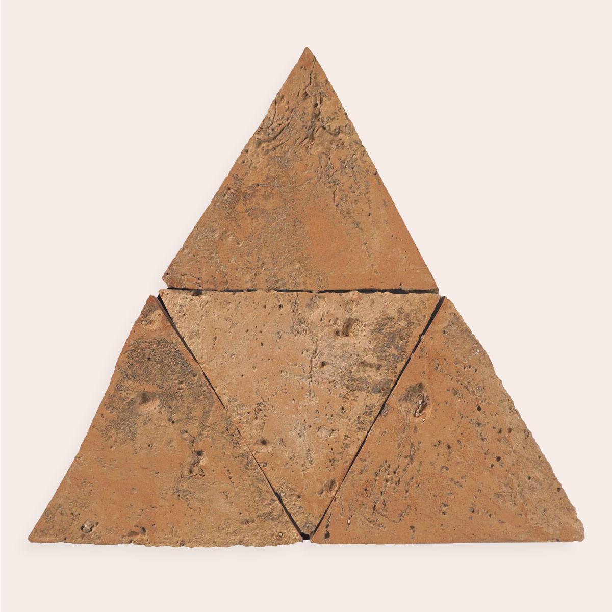 The incorruptible power of the number three. The metaphysical perfection of the trinity. Equilibrium. But what is perfect and predictable is boring. That’s why it is through experimentation that the triangle unlocks its multifaceted soul: alongside a hexagon, it creates infinite nuances, contrasts, and mystical combinations. Decorate a surface with your soul.