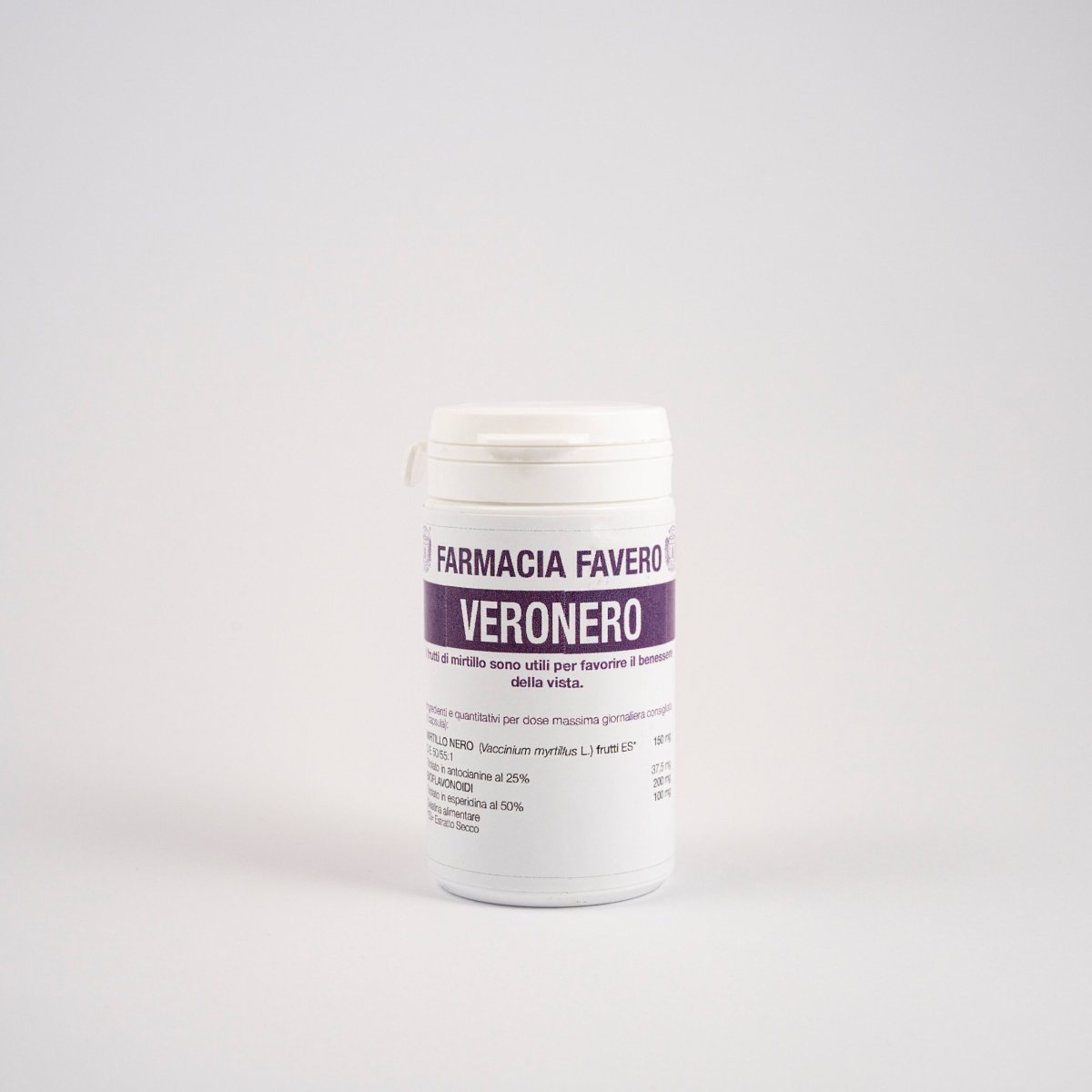 Le bacche di mirtillo nero, ricche di acidi organici, vitamine A e C, e soprattutto glucosidi antocianici (mirtillina), lavorano sinergicamente per ridurre la permeabilità dei capillari e rafforzare i vasi sanguigni, migliorandone tono ed elasticità . Le antocianine presenti in Veronero inibiscono gli enzimi che danneggiano collagene ed elastina, contribuendo a mantenere vasi sanguigni sani. Questo potente mix supporta anche la rigenerazione della porpora retinica, essenziale per una visione notturna migliorata e una vista più acuta in condizioni di scarsa luminosità . Ogni capsula contiene Mirtillo Nero E.S. titolato al 25% in antocianine e Bioflavonoidi titolati al 50% in esperidina, ingredienti chiave per la tua salute vascolare e oculare. Scegli Veronero Farmacia Favero per un benessere che si vede e si sente.